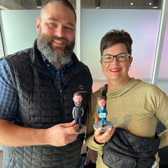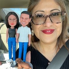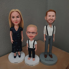 •Die Größe entspricht der Körpergröße der Person von Kopf bis Fuß. Die meisten unserer Wackelköpfe sind zwischen 15 und 23 cm groß. Für andere Größen kontaktieren Sie uns bitte.